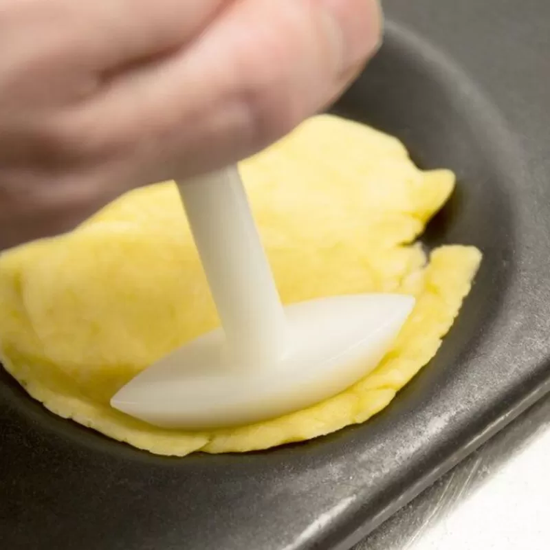 Outil De Foncage A Deux Tetes En Polypropylene, Pour Moule En Silicone, Utilise Pour Foncer Les Tartelettes Unies De 4,2 Et 4,8 Cm De Diametre, Ainsi Que Les Barquettes De Longueur De 7,5 Cm.