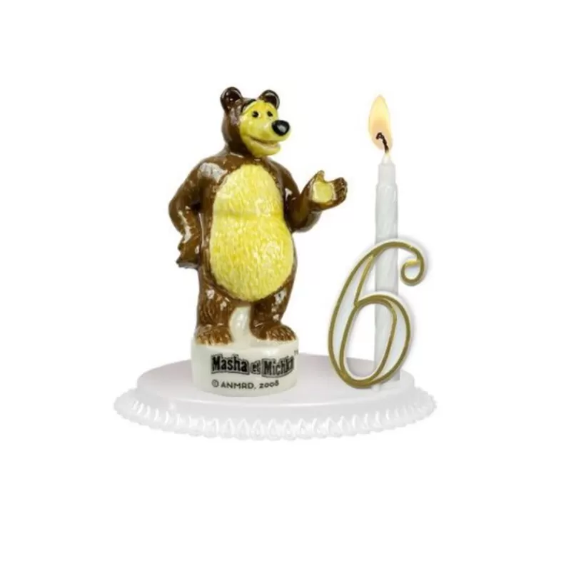 Kit Bougie + Chiffres + Figurine Masha & Michka En Porcelaine Veritable Peinte A La Main, Pour La Décoration D’Un Gateau D’Anniversaire Masha & Michka.