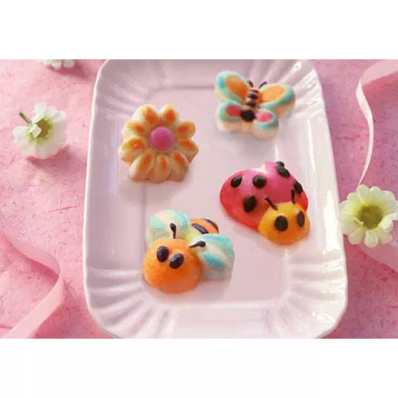 Moule En Silicone Sur Le Theme Du Printemps, Representant Des Insectes Et Des Fleurs : Coccinelle, Abeille, Papillon, Marguerite. Les Moules Siliconflex Sont Souples, Anti-Adherents.